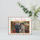 Un magnífico diseño de postales de purpurina de estilo vintage con una gran foto familiar, con franjas de correo de aire "purpurina" rojas y verdes para esta temporada de vacaciones. Añade tus fotos familiares especiales al frente y al fondo de esta postal. Un gran espacio para un mensaje personalizado en la parte posterior junto con espacio para escribir los detalles de la dirección del destinatario y los sellos anteriores. ¿Prefiere una versión digital? Visita mi tienda a invitecentral.com