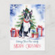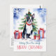 Postales de felicitación navideña de Boston Terrier Merry para gente de perros, cachorro acuarela lindo Boston Terrier con cajas de regalo y árbol de Navidad, postal de Navidades para amantes de perros