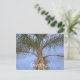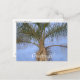 Los saludos están escritos en blanco. Bonito de cerca mirando hacia lo alto de la palmera tropical con frondas esparcidas contra un cielo azul mientras la noche se acercaba. Foto tomada en Point Pleasant Beach Boardwalk, Fotografía original de TamiraZDesigns.