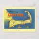 Un mapa vintage ilustrado de Cape Cod, Massachusetts, reutilizado en una nueva postal.