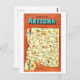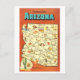 Esta postal es una reproducción de una postal vintage que muestra un mapa de Arizona.