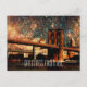 Envíe saludos desde Nueva York con esta vista de otro mundo del famoso monumento en el puente de Brooklyn en la ciudad de Nueva York, cubierta con una fotografía de una galaxia. ¡personalizable total para que lo personalizes como quieras!