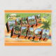 Te llevarás de vuelta a mediados del siglo XX con esta postal retro de Miami Beach. Cada gran carta y el fondo de la habitación están decorados con coloridas y entretenidas imágenes de Miami Beach. Arriba a la izquierda dice "Saludos desde".