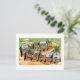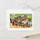 ¿Recuerdan esos largos viajes de carretera cuando eras niño? Tu hermanito no dejaría de preguntar, "¿Ya estamos ahí?". Revive tu niñez con esta gran tarjeta postal clásica de Miami Beach. Retro e impresionante, cuenta con los famosos monumentos de The Beach.