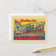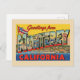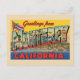 Este es un clásico diseño de postales de estilo vintage con la frase "Saludos desde Monterrey, California". Las grandes y estilizadas letras de MONTEREY contienen cada una una escena única de la ciudad, incluyendo su pintoresco puerto, edificios frente al mar, palmeras y la bandera del estado de California. El diseño tiene un estilo nostálgico, a mediados de siglo, con su paleta de colores retro y su fuente audaz, lo que lo hace perfecto para productos como postales, posters y camisetas para todo aquel que ame el arte de viajes vintage o la hermosa ciudad costera de Monterey.