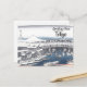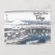 Esta tarjeta postal muestra a peatones cruzando el puente Nihon sobre el río en el distrito Nihonbashi de Tokio, durante el invierno de 1844 después de una nevada, con vistas al Monte Fuji a lo lejos.