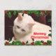 Un hermoso gato blanco con Holly Boarder, y mensaje: "Navidades Meowy". ¡Qué saludo perfecto para que el amante de los gatos envíe esta temporada de Navidades!