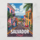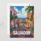 Celebrate the vibrant energy and history of Salvador, Brazil, with this cheerful vintage-style postcard. The design features a steep, cobblestone street lined with brightly colorful colonial buildings and tropical palm trees, leading down to a view of the beautiful bay. This travel poster is reminiscent of the Pelourinho district's charm and is perfect for lovers of Brazilian culture, tropical destinations, and bright, sunny travel art. Ideal for sending greetings, keeping as a colorful souvenir, or framing as stylish wall decor.