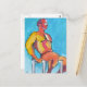 Salvavidas musculares sentados en un puesto de socorristas con un cielo azul brillante en el fondo. Pintura acrílica original en papel del artista gay Shungaboy.