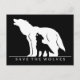 Este es un diseño blanco y negro de un lobo aullante con su cachorro de lobo. Muchas especies de lobos (incluido el lobo gris) siguen en peligro. El texto dice "Salven a los lobos". Este diseño se puede personalizar agregando tu propio texto o imágenes.