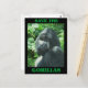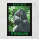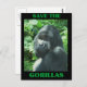 Un acercamiento de un hermoso gorila adulto en su hábitat natural con las palabras Salven a los gorilas que lo rodean.