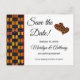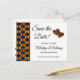 Guarde la tarjeta postal del Boda de fechas con coloridos acentos de corazón de los Kente africanos. Este patrón multicolor con pinstripes marca el tono para una encantadora invitación a una boda afrocéntrica. Esta postal tiene una banda en la parte delantera y acentos de doble corazón en la parte delantera y trasera. Toda la redacción se puede modificar según se desee. - Buscar hermosos artículos coincidentes en nuestra tienda: K30