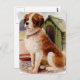 Ilustracion vintage de un San Bernardo frente a su casa de perros