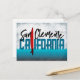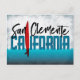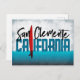 Diseño de surf en San Clemente California. Una tabla de surf roja con texto azul y turquesa - tema de la tipografía surfista.