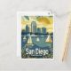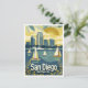 Sumérjase en la belleza intemporal de San Diego California con esta vintage imagen de poster de viajes. Capturando el pintoresco horizonte del centro de la ciudad visto desde la otra parte de la bahía, esta obra de arte muestra la ciudad bañada por la luz del sol. El paisaje se caracteriza por un frondoso follaje que añade un toque de belleza natural, mientras que los barcos navegan perezosamente por las tranquilas aguas, encarnando el relajante encanto costero de la ciudad. Tanto si eres aficionado a la estética de viajes vintage como si simplemente te atraes el encanto de la costa de San Diego, esta obra de arte seguramente evocará un sentimiento de nostalgia y serenidad. Este diseño vintage traerá recuerdos de afiches clásicos de viajes de una época pasada.