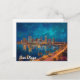Capture the sunny, vibrant beauty of San Diego, California with this striking, artistic postcard. This unique painted style highlights the Waterfront and downtown skyline, featuring palm trees and boats against a dramatic, colorful sky over the bay. Perfect for California locals, beach lovers, visitors to the Gaslamp Quarter, or anyone who loves the quintessential West Coast lifestyle. Use this postcard for travel greetings, as a piece of unique artwork, or for corporate mailing from America's Finest City.