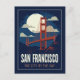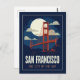 Capture the majestic beauty of the City by the Bay with this dramatic, vintage-style San Francisco travel poster! This striking graphic design features the iconic Golden Gate Bridge soaring over the water beneath a huge, luminous full moon, perfectly conveying a moody, nocturnal atmosphere. The limited, bold color palette of deep blue, red-orange, and white gives the art a classic WPA-era travel print aesthetic. This print is perfect for adding a touch of sophisticated California cool to any living space or office.