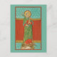 Aquí, un San José maduro y de cabello gris se alza sobre un globo frente a una pared roja colgada de un guarnecido amarillo dorado y borlas. El tapiz está estampado con cruces de armamento igualitario encerradas en cuadrados rotados. La forma de colgarlo desafía la explicación lógica porque el fondo consiste en un cielo azul acuático infinitamente profundo salpicado de estrellas. + San José está ricamente vestido con colores fuertes. Su bata es roja; su manto, verde con un forro de agua oscuro y bordes amarillos dorados. Sostiene un rociado de lirios blancos que simbolizan la pureza de la mano derecha y el gobierno de un carpintero de madera marrón en forma de L, que indica su profesión en la izquierda. + Debajo de los pies de arena de San José hay un pequeño dragón, una corona, un pergamino y un globo grabado con los nombres de los continentes poblados: Asia, Australia, América (del Norte y del Sur), África y Europa. El dragón y el pergamino representan amenazas para la Iglesia. El dragón significa Satanás; el desplazamiento, herejía por ser un précis del Síndrome de Errores de 1864 del Bendito Papa Pius IX, un documento que articula posiciones filosóficas y políticas del siglo XIX hostiles al catolicismo. El pergamino dice: No serviam ("No serviré") / Atheismus (ateísmo) / Odium ecclesiae (Odio a la Iglesia) ~ S. Pontifice (El Papa) ~ Episcopi (Obispos) ~ Presbyteri (Sacerdotes) / Liberalismo. La frase "No servidumbre", es decir, "No serviré", se atribuye a Satanás que rechazó a Dios y fue expulsado del cielo. El ateísmo, el anticlericalismo y el liberalismo se explican por sí mismos y fueron movimientos que dieron forma a las políticas de Pius IX, en particular con respecto a la unificación de Italia y su ascenso como un Estado-nación moderno. La figura altísima de San José estampa la herejía y pisotea el poder de Satanás sobre el mundo aplastando al dragón bajo sus pies derribando la corona de la cabeza del dragón. + Se publicó una variante mucho más elaborada, casi contemporánea, como litografía en blanco y negro. (Comparar nuestro DT 01.) Al igual que el lito blanco y negro, esta litografía de color o cromo fue publicada para promulgar la "Oración a San José" del Papa León XIII de 1889. + Principal Fiesta de San José: 19 de marzo; Fiesta de San José el Trabajador: 1 de mayo + Crédito de la imagen (VVP 09): Cromolitografía antigua de San José, Protector la Iglesia, Pray For Us [H. Jozef, beschermer der H. Kerk, B.V.O.] publicado originalmente por K[arel] v[an] d[er] Vyvere-Petyt, Brujas, Bélgica, c. 1890, de la colección privada del diseñador de la ephemera religiosa.