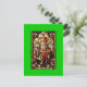 Imagen de vidrio manchado de San Patricio con fondo verde en la postal.