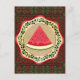 Postal sandía en plato de oliva con tatreez palestino