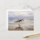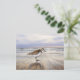Una obra de arte serena con un paracaídas de arena que recorre la orilla con gracia, olas suaves que azotan la arena y un cielo suave y turbio en el fondo. Esta representación pacífica captura el encanto y la belleza de la vida de las aves costeras de una manera atemporal y elegante.