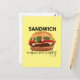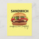 Sandwich me hace feliz postal diseñada por Nisha Prabhu. Delicioso ilustracion gráfico sándwich delicioso con tipografía juguetona. ¡Envíe un trozo de felicidad con nuestra postal 'Sandwich me hace feliz'! Esta deliciosa postal es la manera perfecta de alegrar el día de alguien con un mensaje lúdico y un diseño encantador. Tanto si eres amante de los sandwich como si conoces a alguien que lo es, esta postal seguramente les traerá una sonrisa en la cara. Comparte la alegría de un buen sándwich con esta divertida y extravagante postal que es perfecta para enviar cálidos deseos, compartir una receta o simplemente difundir algo de alegría. ¡Deja que brille tu amor por los sándwiches con esta adorable postal!