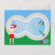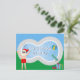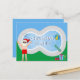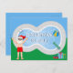 Esta divertida tarjeta postal de Navidad en julio es una invitación perfecta para una fiesta de verano en la piscina. Haz que sea una extravagancia temática del polo norte con Santa Claus en su traje de baño junto a una piscina fresca y un trampolín. El alegre San Nicolás está dibujado en un traje de baño rojo en esta tarjeta postal azul fresca.