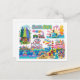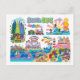 Postal Santa Cruz Illustrated Map Boardwalk Beach Surfing