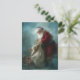 Santa postcard in a painting design. Father Christmas packing his bag of gifts.