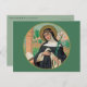 San Rosa de Lima (1586-1617) quería convertirse en monja, pero su padre se negó a permitirla. Sin embargo, al final se le permitió unirse a la Tercera Orden de Santo Domingo para vivir su apostolado en casa. + En este retrato estilizado, St. Rosa está vestido con un hábito dominicano que consiste en una morena blanca, escapular de color crema sobre una bata de un mismo color, y un velo y manto negros. En su cabeza, usa una corona de espinas como Santa Catalina de Siena, su modelo a seguir, en lugar de su atributo más usual: una corona de rosas. (Sin embargo, los Rosas están incorporados al elaborado marco oval de la imagen que no se ve aquí). En su mano derecha, ella sostiene un rociado de mentiras que indican su condición de virgen consagrada. En el fondo hay un paisaje tropical peruano. + San Rosa de Lima es el primer católico en las Américas en ser declarado santo. Es patrocinadora de jardineros y floristas, así como de Perú, América y Filipinas. + Festín: 23 de agosto + Crédito de la imagen (K 48): Detalle de una imagen antigua de San Rosa de Lima, de La vie des Saints de Henry Riancey: ilustrée en chromolithographie, d'aprè s les manuscrits de tous les siè cles, publiée par F. Kellerhoven (París: Librairie helin-Deflorencles. ne, [1874]), f. p. 288, de la biblioteca privada del diseñador. Franz Kellerhoven (1814-1872), cromolitografo, fue un sacerdote-artista alemán que emigró a París y estableció allí una imprenta. Se especializó en obras de arte basadas en manuscritos medievales, pero también hizo litos de pinturas y obras arquitectónicas antiguas.