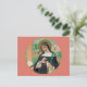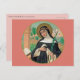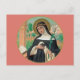 San Rosa de Lima (1586-1617) quería convertirse en monja, pero su padre se negó a permitirla. Sin embargo, al final se le permitió unirse a la Tercera Orden de Santo Domingo para vivir su apostolado en casa. + En este retrato estilizado, St. Rosa está vestido con un hábito dominicano que consiste en una morena blanca, escapular de color crema sobre una bata de un mismo color, y un velo y manto negros. En su cabeza, usa una corona de espinas como Santa Catalina de Siena, su modelo a seguir, en lugar de su atributo más usual: una corona de rosas. (Sin embargo, los Rosas están incorporados al elaborado marco oval de la imagen que no se ve aquí). En su mano derecha, ella sostiene un rociado de mentiras que indican su condición de virgen consagrada. En el fondo hay un paisaje tropical peruano. + San Rosa de Lima es el primer católico en las Américas en ser declarado santo. Es patrocinadora de jardineros y floristas, así como de Perú, América y Filipinas. + Festín: 23 de agosto + Crédito de la imagen (K 48): Detalle de una imagen antigua de San Rosa de Lima, de La vie des Saints de Henry Riancey: ilustrée en chromolithographie, d'aprè s les manuscrits de tous les siè cles, publiée par F. Kellerhoven (París: Librairie helin-Deflorencles. ne, [1874]), f. p. 288, de la biblioteca privada del diseñador. Franz Kellerhoven (1814-1872), cromolitografo, fue un sacerdote-artista alemán que emigró a París y estableció allí una imprenta. Se especializó en obras de arte basadas en manuscritos medievales, pero también hizo litos de pinturas y obras arquitectónicas antiguas.
