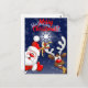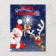 "¡Ho Ho Ho Ho Ho Ho Ho! ¡Los navidades están aquí! ¡Feliz Navidad a todos!" Feliz y lindo Papá Noel con el pulgar arriba, celebrando a los Navidades con su Buda, el gracioso reno - personajes de caricatura. Diseño exclusivo © BluedarkArt.