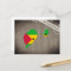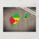 Postkarte mit einem Umriss von São Tomé und Príncipe, gefärbt en den Farben der Nationalflagge.