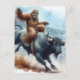Postal Sasquatch viaja toro en color rodeo