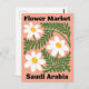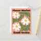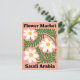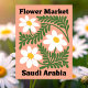 Celebrate the vibrant beauty of the Arabian Peninsula with this elegant Saudi Arabia Flower Market design. This modern illustration features a rhythmic arrangement of three large white blossoms with sunny yellow centers, nestled among winding green fern-like leaves.