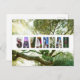 ¡A cualquiera le encantaría recibir esta postal de viaje con una magnífica foto de un roble del sur en Savannah, Georgia! El collage de colores muestra fotos del perfil de Savannah y otras vistas alrededor de Savannah.