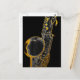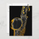 Hermoso saxofón en blanco y negro con resaltados dorados, sobre un fondo negro.