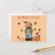 ¿A quién no le gustan las espantapájaros? Bueno, este chico divertido te robará el corazón. Lleva puesto overoles de jean y una camisa verde con un pañuelo rojo. Un cuervo negro está sentado encima de su gorra de paja y otro en una calabaza a su lado. Las hojas de otoño se están cayendo por completo. El texto dice "Espantosidad por Alquiler". Esta sería una tarjeta postal tan linda que enviaría a un amigo o familiar con el que no has estado en contacto recientemente.