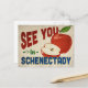 Una encantadora postal de viaje vintage de Schenectady en Nueva York con una hermosa manzana roja, junto con un divertido texto de estilo retro que dice: "Nos vemos en Schenectady"
