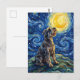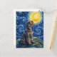 A schnauzer sitting beneath a swirling star-filled sky, gazing up at a glowing moon, inspired by classic post-impressionist movement with rich color.