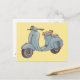 Una acuarela original y una pintura con tinta de una moto sobre un fondo amarillo.