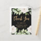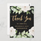 Hermosa tarjeta de agradecimiento de graduación floral pastel con vegetación acuarela que presenta hermosas letras de color dorado y el nombre del graduado y año de graduación en un elegante fondo negro. La parte posterior es una hermosa flor con un mensaje de agradecimiento personalizado y dirección de retorno. ¡Compre en esta tienda artículos para fiestas de graduación coordinados y opciones de colores adicionales!