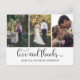 Ornate el guión de caligrafía con espacio para tres fotos en la parte delantera y una en la parte trasera gracias postales. Personaliza con tu propia información y fotos. Si prefiere usar su propio mensaje personal en la parte posterior, simplemente elimine el texto.