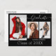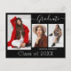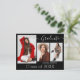 Hermosas postales de invitación de graduación de 3 fotos con escritura moderna de caligrafía en blanco sobre negro real. Para ver más artículos como este, visita mi tienda aquí en "www.Zazzle.com/LakeViewCardCo". ¡Gracias