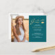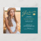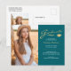 Esta tarjeta de agradecimiento o anuncio de graduación elegante con 2 fotos en ambos lados, presenta texto moderno fusionado con escritura de caligrafía elegante en color dorado y blanco sobre azul turquesa. Las fotos están una en la parte delantera y otra en la parte trasera. Para ver más artículos como este, visite mi tienda aquí en "www.Zazzle.com/LakeViewCardCo". Gracias