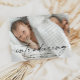 Script presentando el anuncio de nacimiento de foto bebé y tarjeta de agradecimiento. La parte posterior incluye una segunda foto y un mensaje de agradecimiento que puede personalizar o eliminar si prefiere escribir a mano su agradecimiento. Haga clic en el botón personalizar/editar para personalizar este diseño.