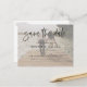 Esta moderna boda fotográfica, salvo la tarjeta plana de fecha, tiene un diseño cálido y minimalista. La parte frontal muestra un texto de guión animado sobre sus nombres y fecha. En la parte trasera, hemos definido el fondo como transparente, de manera que el color del papel sirva como el color base. Puede elegir un color para el fondo, si lo prefiere. También puede editar el texto para adaptarlo a sus necesidades. Puede que desee eliminar un campo de texto que no necesite, o cambiar el color o la fuente de algún texto. Usa las herramientas de diseño intuitivo, tu foto favorita y tu inspiración para hacer de esta elegante boda ahorrarte la tarjeta plana de fecha única que sea tuya!
