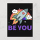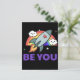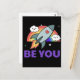 Postal Sé tú. Nubes de cohetes arcoiris con corazón. Póst