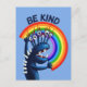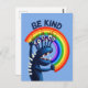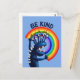 Bondad postal con un personaje divertido sosteniendo un arco iris y el texto "Be Kind". Porque a veces hay que recordarnos que solo ser un buen humano hace que el mundo sea un poco mejor.