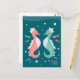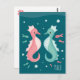 Postcard "Sea Horse Maui" con un ilustracion de dos preciosos caballos de mar que flotan con burbujas y peces en el océano de Maui, Hawaii.